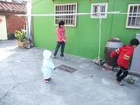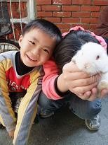 對面有對小兄弟看見我們在門口那嚜熱鬧的 也帶著他們的小白兔兔還我們一起聊天